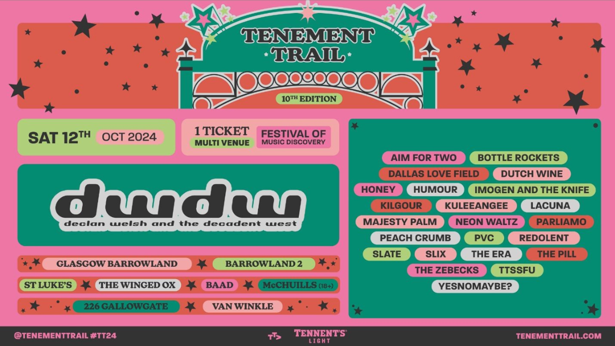 Celebrating the 10th edition of TENEMENT TRAILFestival on 12th October 2024, we are delighted to announce the first wave of acts set to appear at TT24!